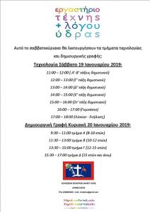 Λειτουργία τμημάτων Τεχνολογίας και Δημιουργικής Γραφής στις 19-20/01/2019