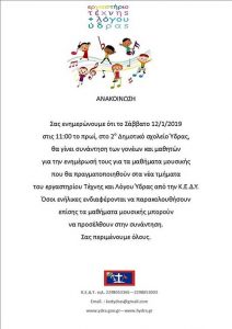 Συνάντηση γονέων και μαθητών για τα μαθήματα μουσικής στις 12/01/2019